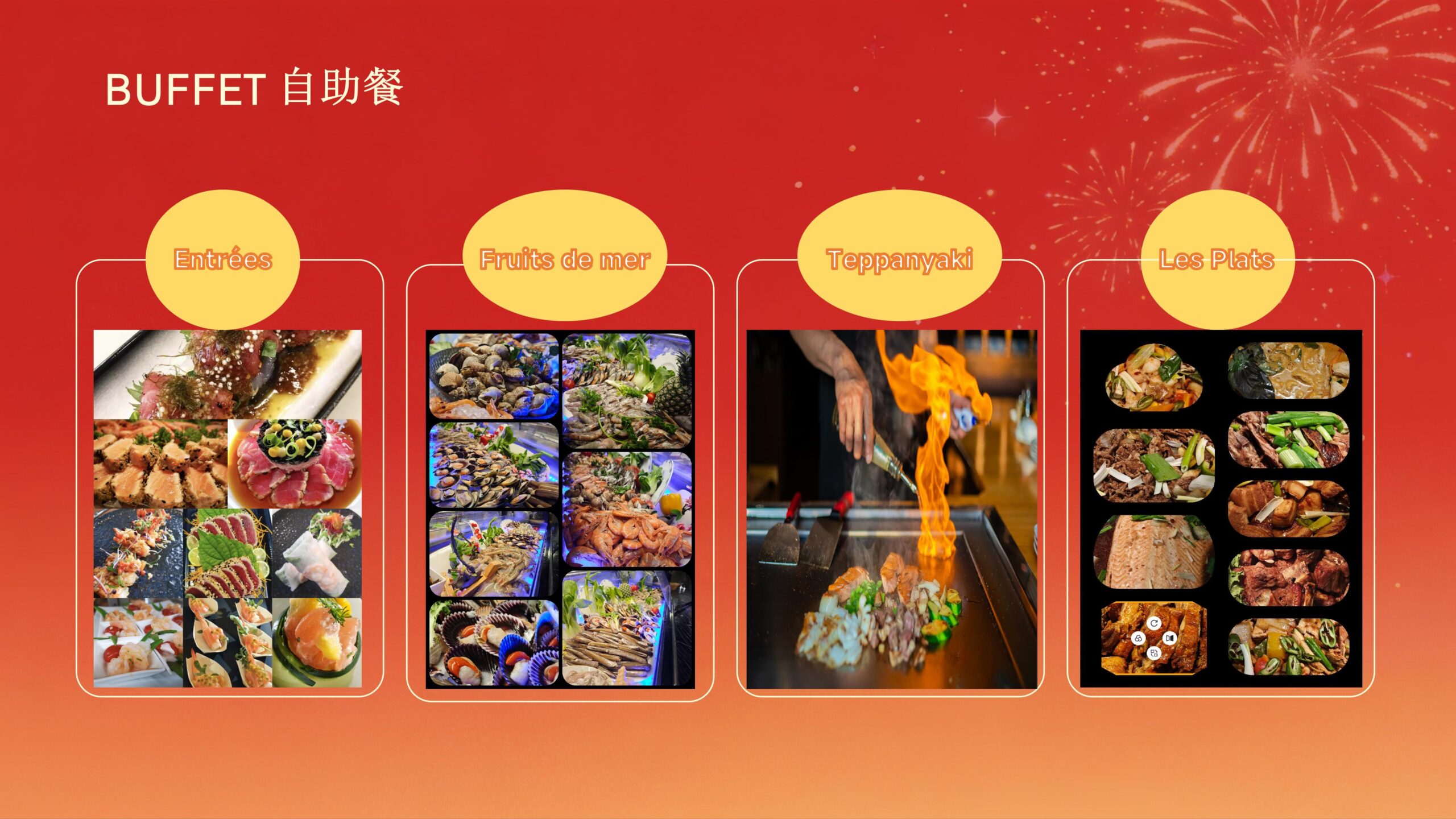 Notre buffet célèbre les saveurs de l’Asie, de la Thaïlande au Japon, en passant par la Chine. Chaque plat est une invitation à explorer la diversité asiatique.